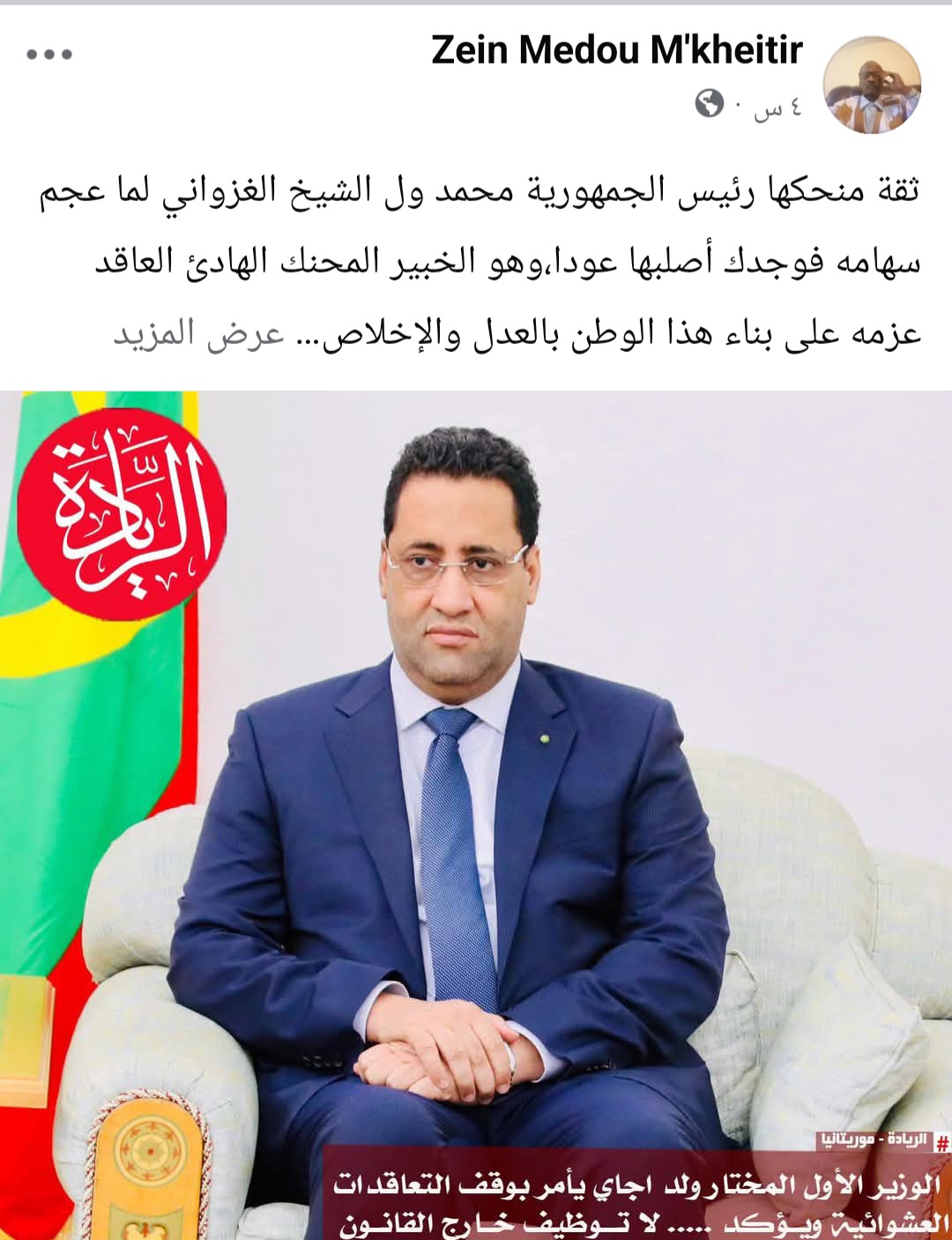 الزين محمدو امخيطير يعدد انجازات الوزير الأول المختار ولد اجاي بعد سنة من تعيينه / تدوينة