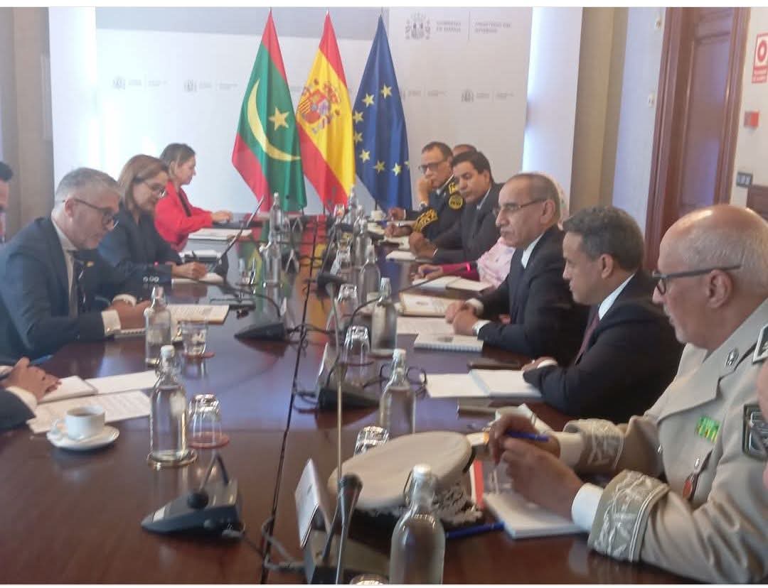 وبحث اللقاء قضايا الأمن و الهجرة والتعاون والتنسيق المشترك بين موريتانيا و المملكة الاسبانية.