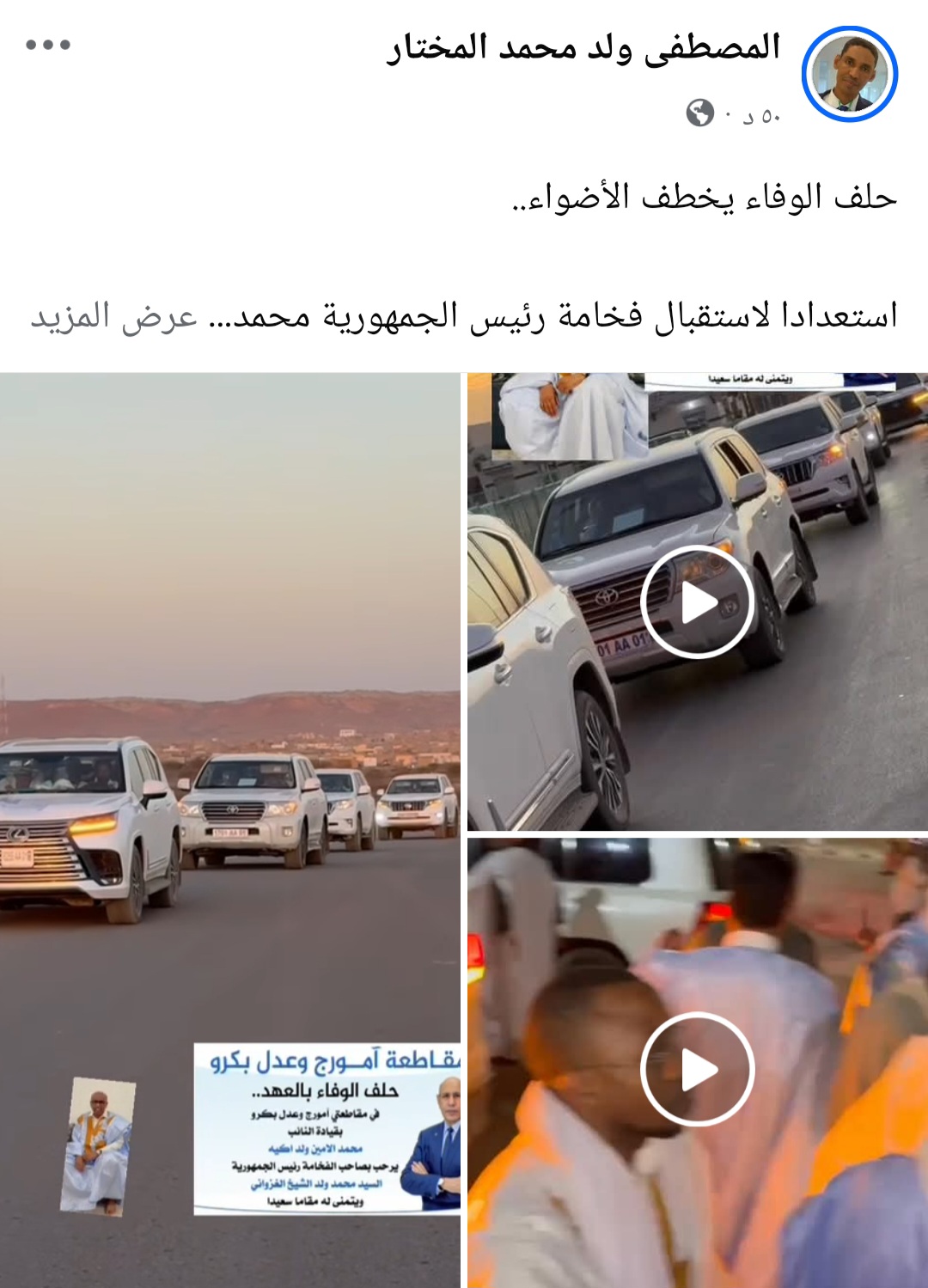استعدادا لاستقبال فخامة رئيس الجمهورية محمد ولد الشيخ الغزواني غدا في النعمه.. حلف الوفاء بالعهد في مقاطعتي أمرج وعدل بگرو بقيادة النائب الموقر محمد الامين ولد اگيه يدخل المدينة بأضخم مسيرة في الولاية..