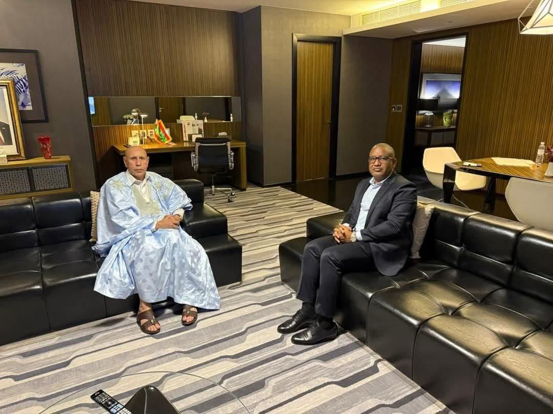 التقى فخامة رئيس الجمهورية محمد ولد الشيخ الغزواني بأنغولا النائب عن دائرة افريقيا أحمدو ولد بوفشه .