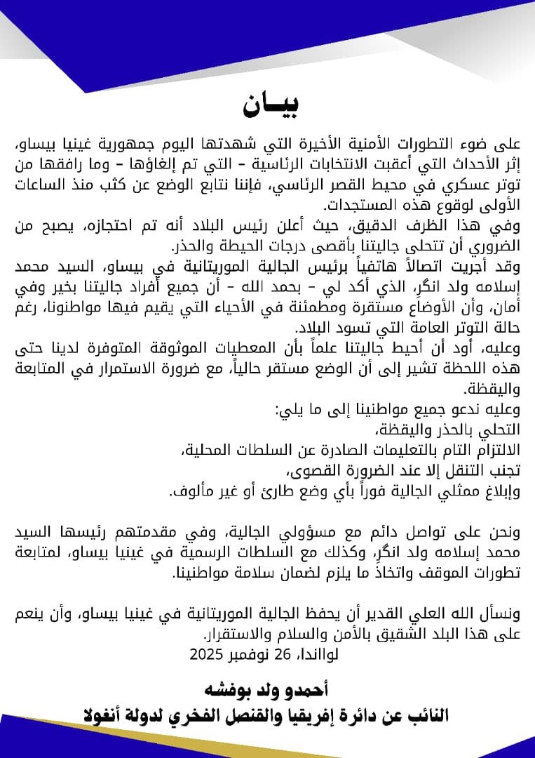 النائب أحمدو ولد بوفشه يصدر بيانا حول الأحداث في غينيا بيساو