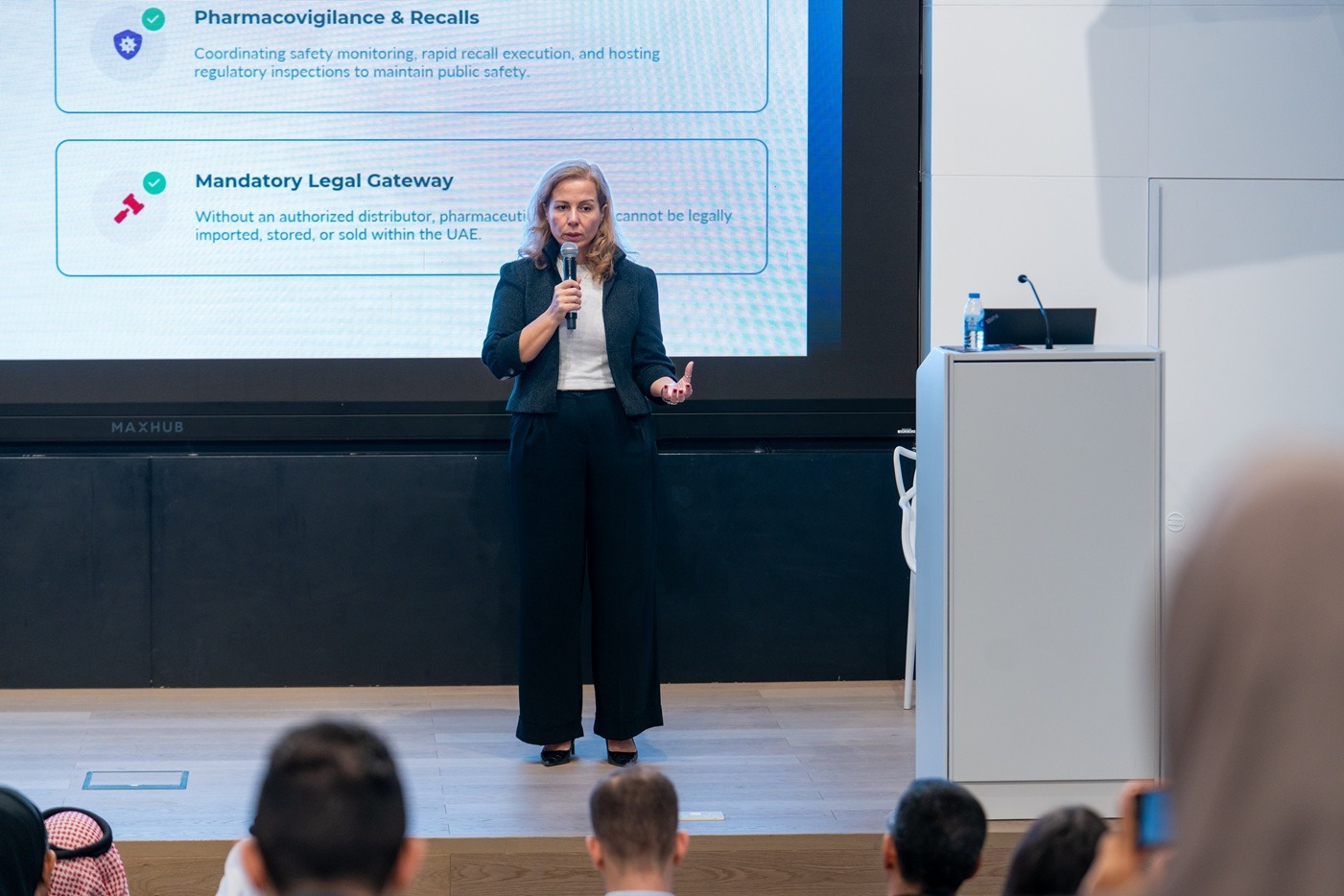 وناقشت عن دور الموزع في دعم الوصول إلى الأسواق واستمرارية الإمداد في جميع أنحاء الإمارات العربية المتحدة، بما في ذلك المشاركة في المناقصات، وتخطيط الطلب، والتنبؤ، وإدارة المخزون. وأشارت إلى أن هذه الوظائف بالغة الأهمية لضمان توافر الأدوية الأساسية والأدوية الخاصة بالأمراض المزمنة بشكل مستمر في المستشفيات والصيدليات ومقدمي الرعاية الصحية.