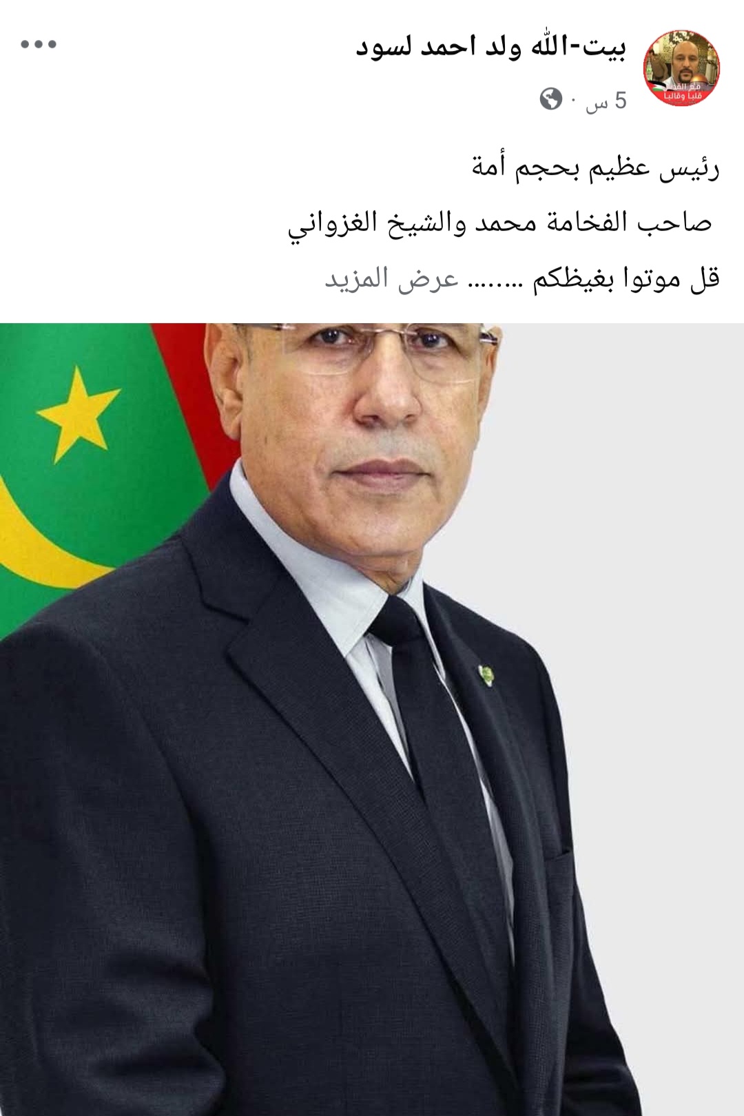 لقد جمع فخامة الرئيس محمد ولد الشيخ الغزواني بين صفات مكارم الاخلاق وقيم النبل والكرم و مميزات القيادة والكفاءة …وحسن السيرة وطيب الأصل فهو سليل بيوت العز والشرف وهو مدرسة في الاخلاق فعلا وقولا وهو القائد الفذ صاحب الكفاءة والنزاهة والكارزمية الذي اجتمعت عليه كل القوي السياسية لأول مرة في تاريخ هذه الامة أغلبية ومعارضة يمنية ويسارية متطرفة ومعتدلة …لايختلف منها اثنان فيما حباه الله به من مكارم الاخلاق وحسن السمعة و السيرة وروح القيادية وحب الوطن وخدمة المواطنين وبناء دولة العدل والإنصاف لقد استطاع جمع كل الطيف السياسي في هذه البلاد ووحد كلمة الجميع واعطي لكل ذي حق حقه واشرك الجميع في تسير شؤون البلاد