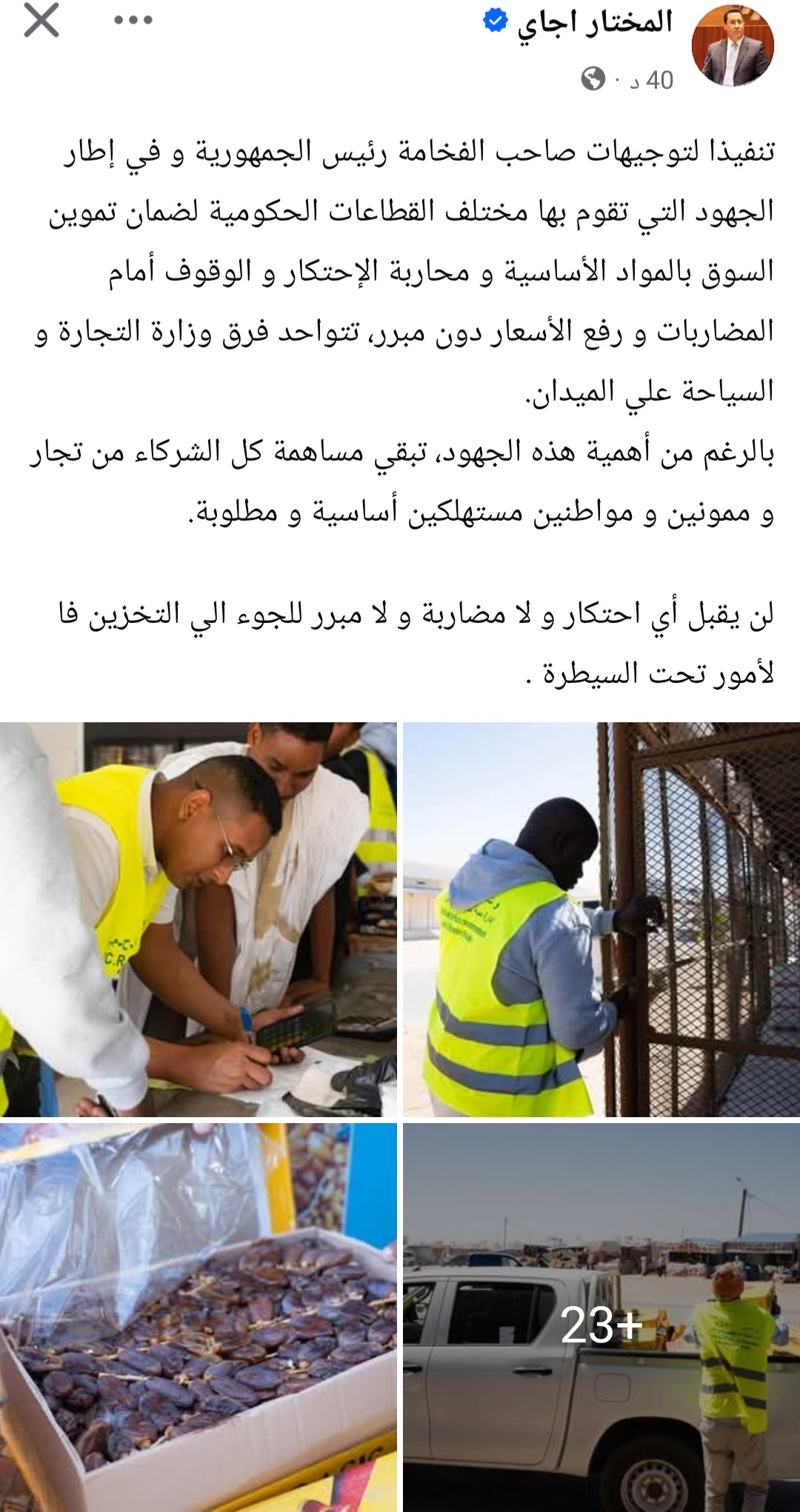 كتب الوزير الأول المختار ولد اجاي على صفحته بفيسبوك: