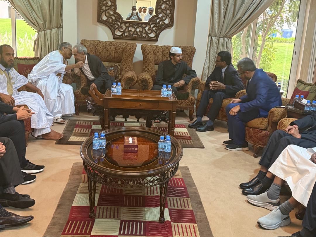 حصلت الحروف الإخبارية على صور حديثة من تقديم سعادة السفير الموريتاني بقطر محمد ولد ببانه واجب العزاء باسم فخامة رئيس الجمهورية محمد ولد الشيخ الغزواني للرئيس الأسبق معاوية ولد سيد أحمد الطايع في وفاة زوجته .