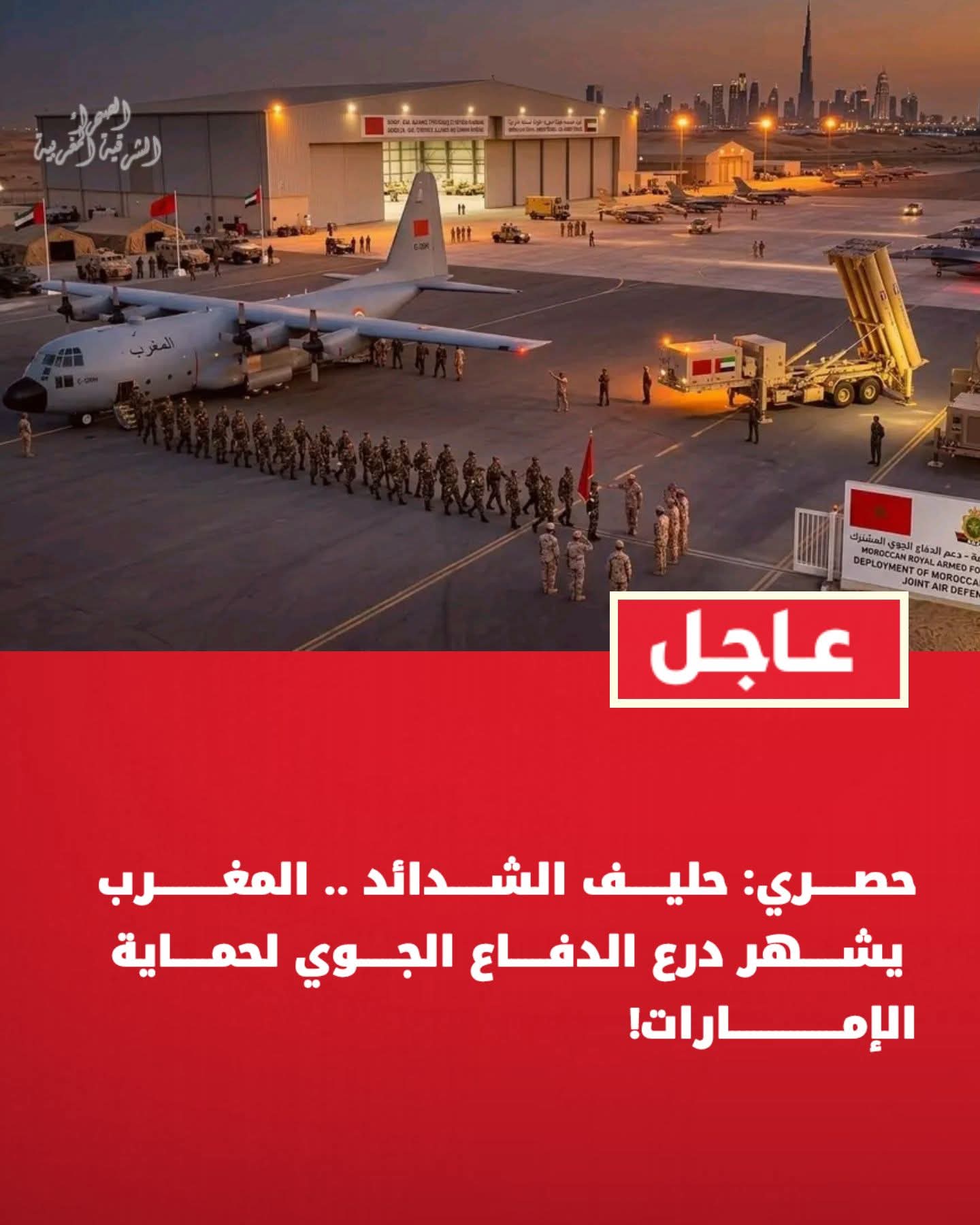 أكدت مصادر دبلوماسية واستخباراتية موثوقة أن المملكة المغربية أطلقت عملية دعم عسكري وتقني استثنائية لدولة الإمارات العربية المتحدة، تهدف إلى تعزيز الجدار الدفاعي الإماراتي في وجه التهديدات الجوية المتصاعدة.
