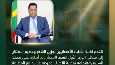 بعد اطلاع معالي الوزير الأول المختار ولد أجاي على قضية الأطباء الأخصائيين المتعلقة بحرمان عدد من التخصصات من المشاركة في…