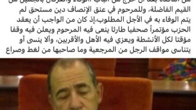 كان على حزب الإنصاف أن يعلن وقفا لأنشطته السياسية ،وأن يصدر بيانا بطعم الحداد وفاء لهذه القامة السياسيه التي وقفت…
