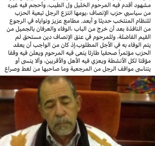 كان على حزب الإنصاف وقف أنشطته السياسية وإصدار بيان بطعم الحداد وفاء للراحل الخليل ولد الطيب / تدوينة