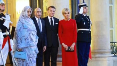 صورة من الإليزى للرئيس غزواني وحرمه خلال مأدبة عشاء أقامها الرئيس الفرنسي
