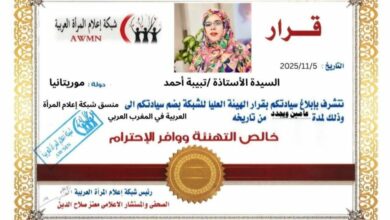 أصدر المستشار الاعلامى د. معتز صلاح الدين رئيس شبكة إعلام المرأة العربية القرارات التالية اولا ..تكليف الإعلامية الموريتانية البارزة الاستاذة…