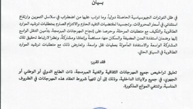 وزارة الثقافة والفنون تعلق تراخيص المهرجانات الثقافية والفنية بسبب الظروف الدولية الراهنة
