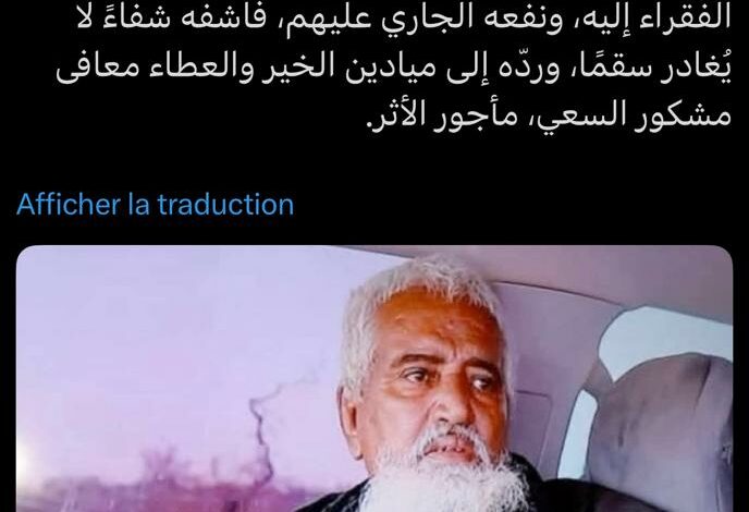 تعرض الزاهد المنفق على المساكين محمد الزين ولد القاسم لوعكة صحية عابرة بحول الله نسأل الله أن يمن عليه بالشفاء العاجل. اللهم إنك تعلم حاجة الفقراء إليه، ونفعه الجاري عليهم، فاشفه شفاءً لا يُغادر سقمًا، وردّه إلى ميادين الخير والعطاء معافى مشكور السعي، مأجور الأثر.