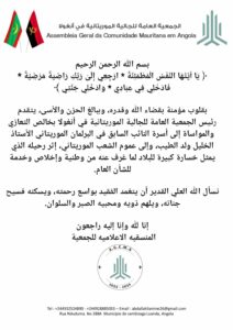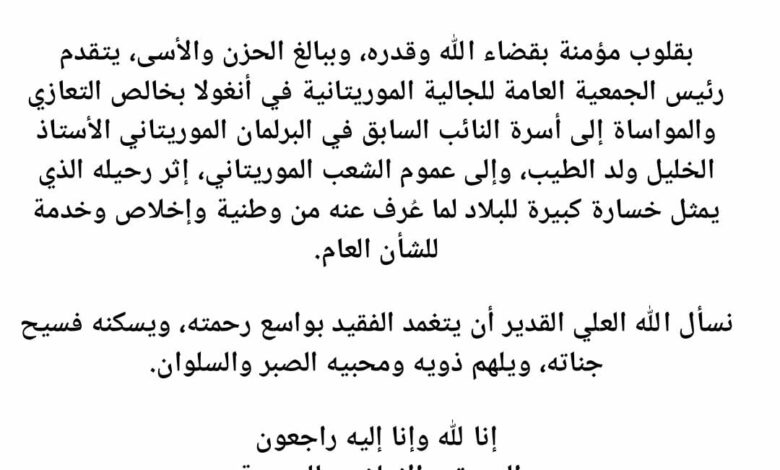 الرئيسية/Uncategorized/الجمعية العامة للجالية الموريتانية بأنغولا تعزي في رحيل الخليل ولد الطيب Uncategorizedالأخبار الجمعية العامة للجالية الموريتانية بأنغولا تعزي في رحيل الخليل ولد الطيب Redacteur en Chefمنذ ساعة واحدة 50 Redacteur en Chefمنذ ساعة واحدة 50 شاركها فيسبوك X ماسنجر ماسنجر واتساب تيلقرام